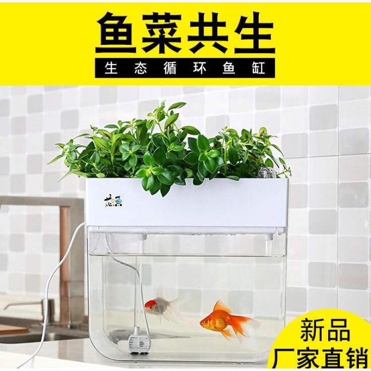 Mini Aquaponic Ecosystem Fish Tank Hydroponic Cleaning Tank Fish