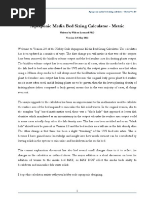Aquaponic Media Bed Sizing Model Explanation Metric Ver 2 0